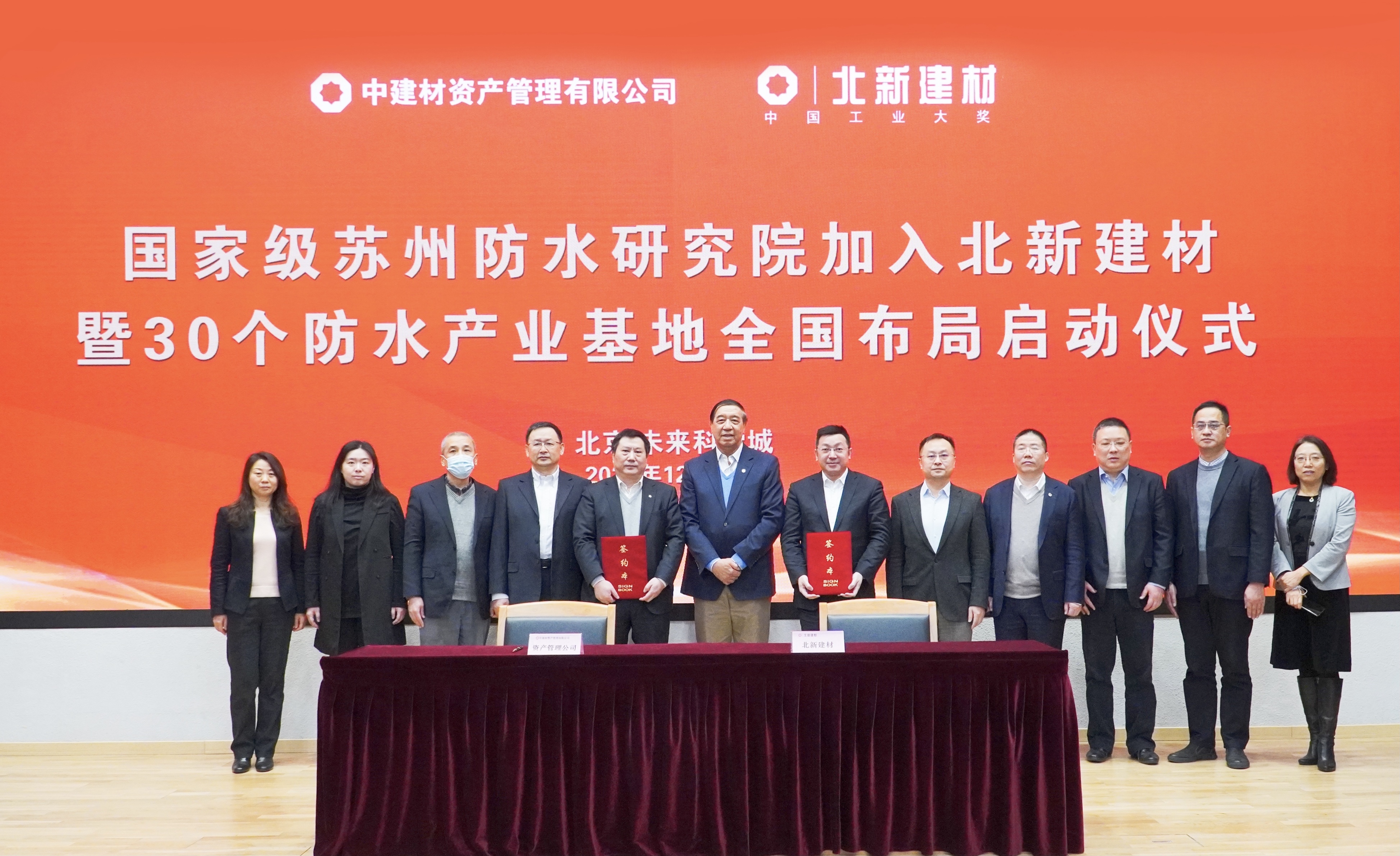 12月30日,防水行業(yè)唯一國(guó)家級(jí)研究院——中國(guó)建筑材料科學(xué)研究總院蘇州防水研究院(以下簡(jiǎn)稱“蘇州院”)加入北新集團(tuán)建材股份有限公司(以下簡(jiǎn)稱“北新建材”)簽約儀式在北京未來(lái)科學(xué)城北新中心舉行。北新建材黨委書(shū)記、董事長(zhǎng)王兵和中建材資產(chǎn)管理公司黨委書(shū)記、執(zhí)行董事、總經(jīng)理高則懷分別代表雙方簽署戰(zhàn)略合作協(xié)議,中國(guó)防水協(xié)會(huì)秘書(shū)長(zhǎng)朱冬青代表行業(yè)見(jiàn)證簽約,簽約儀式由北新建材副總經(jīng)理管理主持。中建材資產(chǎn)管理公司副總經(jīng)理劉志平、財(cái)務(wù)部總經(jīng)理商慶國(guó),蘇州院院長(zhǎng)巢文革、副院長(zhǎng)瞿建民、總工程師楊勝,以及北新防水集團(tuán)在京干部員工見(jiàn)證簽約。